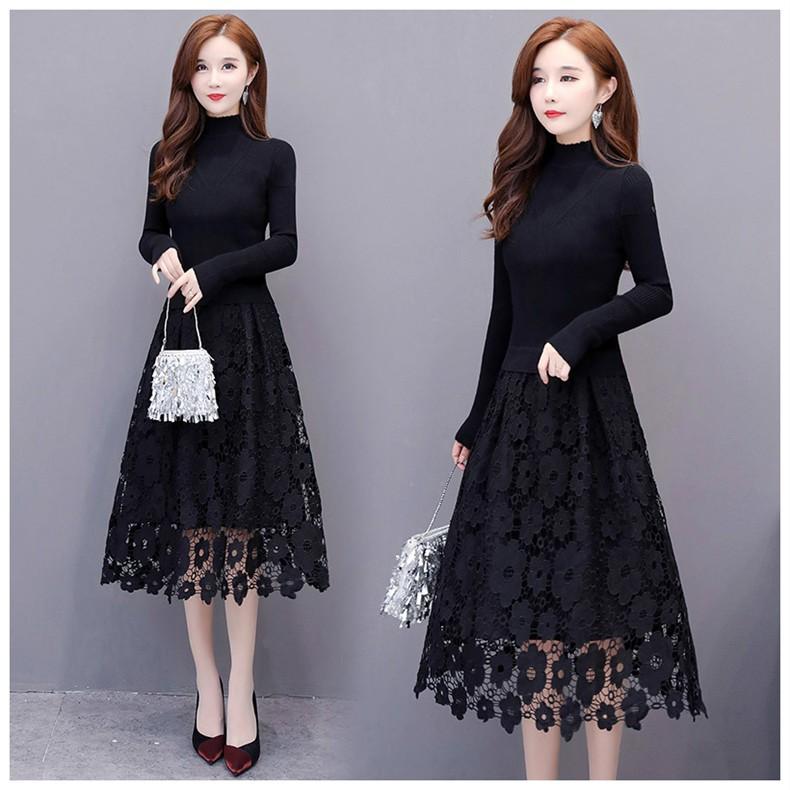 ニットワンピース レディース 40代 秋冬 きれいめ 膝丈ワンピース 長袖 ハイネック レースフレア ワンピースニット黒 結婚式ドレス 通勤 着痩せ 新作 Y2817 Fairyhouse 通販 Yahoo ショッピング